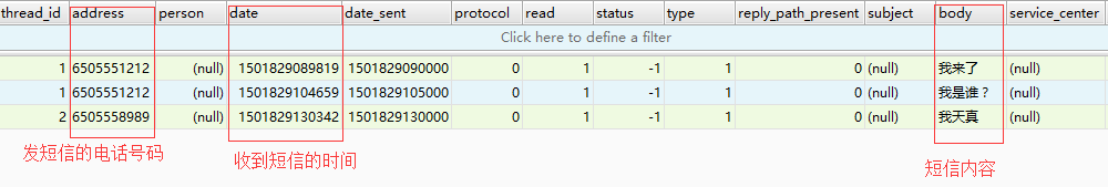 开始切入正题,先说短信,要从数据库中获取数据,就要了解其结构