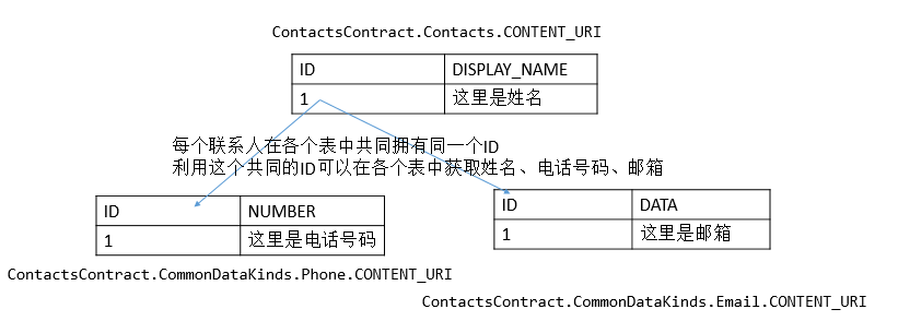 * 通过这个ID可以在ContactsContract.CommonDataKinds.Phone.CONTENT_URI 中找到该联系人的电话号码