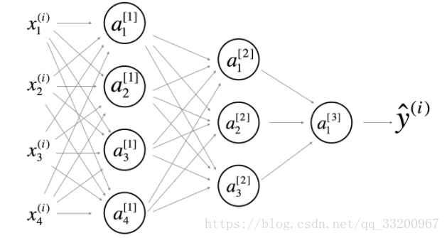 - 以下这个网络是4层的神经网络,有3个隐层