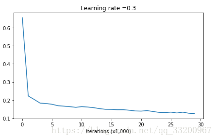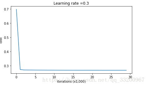 def model(X, Y, learning_rate=0.3, num_iterations=30000, print_cost=True, lambd=0, keep_prob=1):