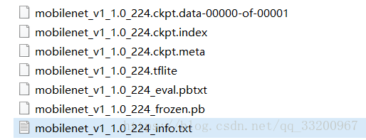 这里笔者使用官方提供的模型,这里官方提供的丰富的模型。这次笔者使用的是mobilenet_v1_1.0_224.tgz模型,我们下载这个模型之后解压可以以下文件: