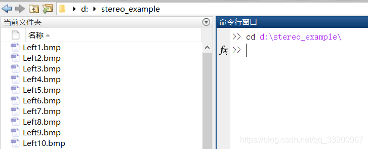 然后在MATLAB R2016a命令区输入:cd d:\calib_example打开标定图片的文件夹,如果读者保存的图片是其他路径,就打开对应的路径。