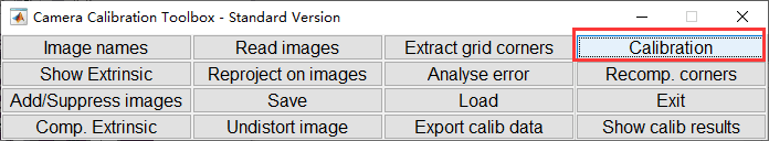 全部标记完成之后,再次回到标定功能选择菜单上,然后点击Calibration按钮。