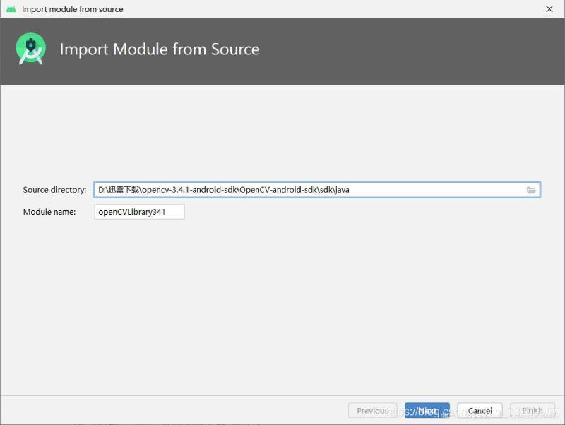 1、创建一个Android项目,解压源码压缩包,在Android Studio中点击File—>Import Model,然后浏览解压后的sdk/java添加,如下图所示,如何正常的话会显示OpenCV的版本。